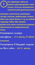 3. У вас свой сайт о строительстве или отделке помещений, быть может вы выполняете ремонт, продаете мебель, инструмент или строительные материалы, Мы можем для вас разместить на страницах своего сайта отличную рекламу, как баннеров различного формата, так и ссылок временного и постоянного размещения в новых и старых материалах, как на одной выбранной вами странице, что касается ссылок, так и сквозных на весь сайт, что касается баннера.