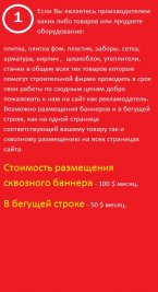 2.Если Вы являетесь производителем каких-либо товаров, продаете оборудование: плитка, плитка фэм, пластик, заборы, сетка, арматура, кирпич, шлакоблок, утеплители, станки в общем всех тех товаров которые помогут строительной фирме проводить в срок свои работы по сходным ценам добро пожаловать к нам на сайт как рекламодатель. Возможно размещения баннеров и в бегущей строке, как на одной странице соответствующей вашему товару так и сквозному размещению на всех страницах сайта.