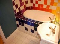 Яркие цвета в ванной или нейтральные цвета в ванной комнате - это дело вкуса и личных предпочтений. Кто желает окружать себя яркой расцветкой помещения, другие предпочитают на стенах в ванной только пастельные тона, а некоторые позволяют более насыщенные цвета, но только в виде небольших исключений. Так что, перед ремонтом ванной придется разобраться, какая расцветка интерьера приходится вам по душам и какая цветовая гамма Вас будет окружать на протяжении 10 лет минимум!!! Опираться на мнение специалистов дизайнеров тоже не стоит, ведь среди профессионалов, нет единого консенсуса по этому вопросу. Многие дизайнеры и декораторы говорят за яркие и темные поверхности, типа поглощают свет в ванной комнате. Другие рекомендуют использование цвета и их сочетания, потому что они считают, что эти технологии помогают визуально «расширить» пространство. Как всегда, истина во внутреннем равновесии. Слишком яркая ванна, может показаться, что сделана без вкуса, и то, и не подойти под концепцию целой квартиры или дома. Грех, конечно, делать стены полностью бледными, это касается и пола. Мебель же и аксессуары, активно влияют на окружающую нас обстановку, так что, если у вас ванная комната в постельных тонах, отлично подойдут украшения яркого характера, если на оборот, яркая ванная, то аксессуары постельных тонов. Мебель для ванной комнаты с яркими фасадами лучше выделить на нейтральном фоне. Все аксессуары в ванную комнату, также играют важную роль в создании общего впечатления от ванной комнаты, как уже говорилось выше. Они заботятся о внутренних пряных нотах и выделяют необходимые для ванной акценты. Основное правило в их выбор основан на стиле всех помещений. Ни для кого не секрет, что цвета в окружающей среде оказывают влияние на эмоции и настроение. Таким образом, правильный выбор цвета на внутренней стороне является очень важной задачей, о чем можно почитать тут. Фото ванных комнат в разных расцветках плитки:На фото ванные в разных концепциях, оранжевые, синие, в постельных тонах и нейтральные, фото при нажатии становиться больше. ВИДЕО: - Смелыt дизайны ванных комнат в разнообразных расцветках: