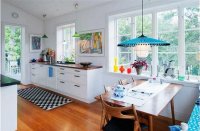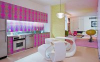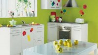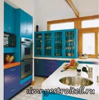 Красочные идеи для дизайна кухни + 10 фото.Конечно, хорошо, когда на кухне достаточно места и есть где разгуляться. Вот и в нашем случае основываясь на частных домах, наши дизайнеры провели на разных планах домов различный дизайн кухонных помещений, правда, не в привычных нам постельных тонах, а в красочных, разноцветных окрасах стен, мебели, потолка, пола. Взяв любой дизайн кухни из фото, вы увидите как все бытовые приборы, шкафчики, мебель, аксессуары, прекрасно гармонируют и соединяются в одну целостную картину, как единое целое. (При нажатии фото увеличивается) На фото будет представлен дизайн кухонных помещений в разнообразной цветовой гамме, где окрашенные стены в постельный или нейтральный тон, затмевает необычная расцветка мебели или наоборот, на фоне ярких дизайнерских кухонных стен, необычно вписаны дизайнерские шкафчики с харизматичными рисунками, которые по замыслу дизайнера должны быть нарисованные в ручную. И нам мой взгляд, этот современный интерьер-дизайна кухни на фото, где нет минимализма в интерьере, а достаточно много бытовой утвари, что очень подходит для оформления интерьеров нашей страны. Так как мы не привыкли, что на кухне мало всяких приборов и шкафов, пеналов для хранения нужных и не нужных нам вещей, так что, такой дизайн кухни, как нельзя кстати, впишется в нашу повседневную жизнь, тем более что они такие красочные и радостные, что очень радует взгляд и греет душу. Дизайн кухни фото. Расскажи друзьям о чём читал!