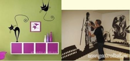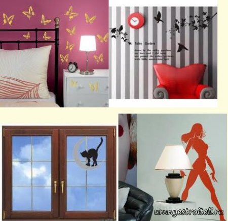 На этом месте была статья про интерьерные стикеры. Мы её благополучно снесли в форму комментариев, так как их немного подвинули интерьерные декоративные наклейки. Но, суть нового изобретения нисколечко не изменила предназначение. Что интерьерные декоративные наклейки, что стикеры несут в себе одну задачу - разнообразить внутренний мир помещения и дополнительно украсить собою стены, мебель а порою и скрыть то, что не хочется показывать окружающим. Интерьерные наклейки выпускают разных форм и фасонов, для совершенно разных помещений. Их можно найти для любого помещения в квартире, как на кухню, в какой-нибудь причудливой форме, так и более строгие, в зал и меланхоличные - в спальню. Очень много красивых вариаций декоративных интерьерных наклеек для детских комнат, которые так и просят, что бы их прилепили на стену или детскую мебель. Судите сами! Ниже представлены картинки, где на стены и мебель уже приклеены различные интерьерные декоративные наклейки. Согласитесь! Ну, очень, уж, эти декоративные наклейки подчеркивают индивидуальность интерьера помещения. Это хорошо видно на фото, которое сделано в прихожей. В месте, где находится вешалка для одежды, приклеены стикеры в форме игрушечных человечков, которые как будто-бы повешены на вешалке. Чудно, по-моему! А эти две птицы над выключателем? Я бы с удовольствием приклеил себе таких. А чёрная собака на мебели или зелёная на стене над детским столом? По-моему, даже очень достойные детские декоративные наклейки! Одно дело нанимать человека, чтобы он вам рисовал, другое дело, когда вы сами, просто придерживаясь определённых правил наклеивания, без труда можете освежить комнату какой нибудь необычной наклейкой. Что еще очень меня располагает к этой теме, так это то, что эти наклейки у производителя можно заказать, опираясь на свои предпочтения: под вечеринку определённой тематики, дабы наполнить интерьер изюминкой, ну, и всё в таком духе! На что их можно клеить и главное как?Декоративные наклейки можно клеить на любые ровные поверхности без пупырышек и рельефа: мебель, стену из ровных обоев или просто покрашенную плитку, стекло, зеркало, выключатель, мойку, раковину, унитаз, да, куда душе угодно, и где это будет уместно. Главное, чтобы поверхность была гладкой. Есть возможность утопить в отделочном материале эти наклейки. Ну, допустим, у вас на стенах обои. Берём нашу наклейку и по обоям обрисовываем карандашом. Далее, при помощи строительного ножа или бумажного, по контуру нашей наклейки вырезаем часть обой. В полученное пустое пространство вклеиваем стикер. Отличным вариантом будет и такое действие. С помощью скотча прилепить на стену декоративную наклейку и прямо по ней и по обоям, глубоко задавливая нож, срезать наш рисунок, что позволит тютелька в тютельку, контур в контур, получить пустоту для стикера. В помощь вам прикладываю обучающее видео, в котором показано, как клеить декоративные наклейки-стикеры. Как клеить декоративные наклейки - видео.**Статья подготовлена администрации сайта Строительство от а до я. Енакиево-Донецк*. Расскажи друзьям о чём читал!