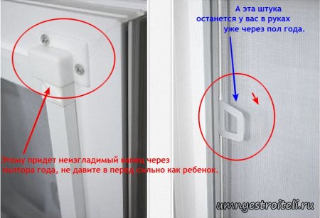 Ну а кто не понял, в начале статьи, что ломается через пол года эксплуатации москитной сетки, вот вам фото.