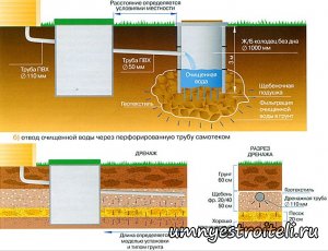 Те, у кого на загородной даче нет канализации, по праву чувствуют себя несчастными людьми. Современному человеку, особенно прожившему всю жизнь в городе, трудно мирится с отсутствием удобств, в загородном доме, даже сказал бы так, в домах не имеющих центральной канализации. Но, действительность предоставляет комфортабельный путь решения проблемы – личный септик, либо автономная сточная канава для дачного дома, построенные своими силами. Септик - это универсальный метод чистки любого типа сточных вод, как хозяйственных, так и бытовых. Такой выход является частью канализационной системы, локальным сооружением, применяющимся для первичной чистки стоков и представляет из себя некую емкость, показанную на картинке. Вся автономная сточная система загородного дома имеет двухступенчатую структуру: 1) система трубопроводов; 2) очистное оборудование; 1-ая ступень нужна для обеспечения транспортировки сточных вод самотеком, или с помощью насосных подстанций под напором в емкость, бак, а стандартное решение, применяемого к очистному оборудованию представлено септиком. Следует учитывать, что системы очистки проектируют с учетом объемов сточных вод, скажем, если дом проектируется/используется для сезонного проживания, то объем стоков малый, можно экономить на материалах, при обеспечении высочайшего уровня санитарно-гигиенической обстановки пригородного дома. А вот на фото чуть ниже, просто идеал локальной канализации. Фото при нажатии увеличивается. Как выбирать септик для устройства локальной канализации?Автономная канализация работает по такому алгоритму: из стояка в трубопровод подаются стоки, которые потом попадают в септик, где удаляются осадков. При выборе локального очистного сооружения следует точно определить дневную норму(объем) бытовых сточных вод, так как продолжительность отстаивания составляет до 3-х суток, далее - постепенное образование осадка, который начинает выпадать лавинообразно. Когда выбирают септик, то проектируют объемы сточных вод, троекратно превышающие максимальные дневные. Общая эффективность канализации для загородного дома достигает 60%, именно потому высококачественная и неопасная чистка требует внедрения разнообразных способов доочистки. Обычно, форма септика это сугубо компромиссное решение: очень глубокая сделает чистку септика крайне неудобной, а неглубокая малоэффективна. Хорошая и оптимально высчитанная, проверенная на практике глубина от уровня воды - 1,5 метра. [media=https://www.youtube.com/watch?v=1e4FobLHu8E] Все известные септики классифицируют по двум видам очистки: - способ почвенной фильтрации и глубочайшей биоочистки. Для такого способа нужен особый тип грунта, обычно песчаный, для которого внедряют поля фильтрации и системы биоочистки, для глинистых и суглинистых грунтов применяют – земляную фильтрацию и особый биофильтр, в случае высоко залегающих подземных вод – применяют земляную фильтрацию, а также септик из полимерных материалов. Септики изготовляют, используя пищевой целлофан, а также композитные материалы: листовой целлофан, пластик, полипропилен, стеклопластик. Некоторые септики изготовляют из стали и железобетона. Локальные сточные канавы, классифицируют по материалу на: - Пластмассовые; - Изготовляемые из нержавеющей стали; - Железобетонные; Обычно их стоимость в итоге оказыва