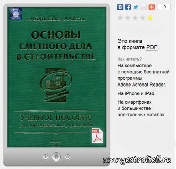 скачать в электронном формате с нашего сайта и читать на компьютере. Данная книга поможет вам освоить основы сметного дела и научит правильно обеспечивать строительный объект материалами без задержек и ошибок в подсчётах. Подойдет как постоянная помощь уже профессиональному инженеру специалисту, так и начинающему сметчику в виде наставления.