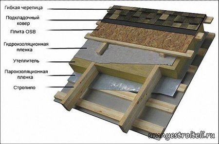 ВИДЕО: - устройство системы кровли ригель, мауэрлат, конёк, стойки, кобылка, обрешетка.*Схема устройства мягкой кровли проста и ДРЕВНЯЯ КАК МИР. С создания первой подсистемы для мягкой кровли утекло не мало времени, но ничего особо оригинального в неё не привнесли, кроме группы материалов которые призваны защитить тот или иной конструктивный элемент, строительный материал, от преждевременного износа. Поэтому в подсистему мягкой кровли были внедрены некоторые материалы обладающие защитными или отражающими свойствами: гидробарьер*, паробарьер*, тот-же фольгоизол*, и т.д. Но сама основная схема сборки кровли осталась неизменной! В неё как входили так и входят: ригель, мауэрлат, конёк, стойки, кобылка, обрешетка. С посистемой более или менее понятно, а что с самим кровельным пирогом? Кровля на основе битумной черепицы состоит из таких слоев как: - гибкая черепица; - подкладочный ковёр; - гидроизоляция; - утеплитель; - пароизоляция; - ветрозащита; - водосточная система - вентилирующее устройство. Каждый из слоев должен быть правильно и аккуратно уложен, так как только это гарантирует, что кровля получится надежной и долговечной. При соблюдении технологии монтажа, срок службы кровли может достигать 70 лет без необходимости проведения дополнительных работ. На рынке строительных материалов представлено большое количество кровельных покрытий, таких как металл, керамика, шифер, толь и многие другие. Также появляются и новые материалы. Например, “Ризолин”, который представляет собой кровельное покрытие мягкого типа и входит в стандартную схему устройства кровли*. Этот материал экологически безопасен, его мягкость облегчает процесс монтажа, а долговечность и высокие гидроизоляционные свойства делают его отличным выбором для крыши. Особенности мягкой черепицы:Для мягкой (битумной) черепицы характерен повышенная гибкость, которая позволяет при монтаже легко реализовывать даже сложные формы конструкции крыши. Основа битумной черепицы – слои стекловолокна, которые пропитываются битумными слоями, что обеспечивает высокую устойчивость к механическим воздействиям и долговечность материала. Внешняя поверхность черепичных листов покрыта слоем гранулированного камня. Этот слой не только придает черепице эстетичный внешний вид, но и обеспечивает надежную защиту от механических повреждений, таких как удары града или падающих веток, а также разрушительного воздействия солнечных лучей, предотвращая выгорание цвета. Битумная черепица выпускается в различных цветовых решениях, что позволяет подобрать материал под любой дизайн здания. Кроме того, она обладает хорошими шумоизоляционными свойствами, снижая уровень шума от дождя, ветра или града. Одним из главных преимуществ битумной черепицы является ее легкий вес, благодаря которому не требуется усиление конструкции здания, что экономит время и средства на строительство. Битумная черепица также обладает высокими гидроизоляционными свойствами и долговечностью – срок службы составляет от 20 до 50 лет в зависимости от производителя и качества материала. Расскажи друзьям о чём читал!