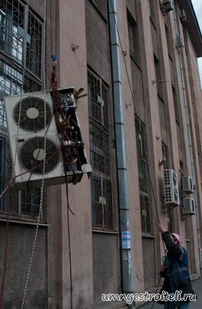 Качественный монтажа кондиционера имеет очень важное значение. Однако также важна процедура по его демонтажу. Демонтаж кондиционера требуется, когда необходимо заменить старый кондиционер новым. Кроме того кондиционер демонтируется, когда жильцы собираются переезжать на другую квартиру. Для демонтажа кондиционера, вы можете воспользоваться услугами предлагаемыми профессионалами, которые обеспечат быстрое и качественное Вам также необходимо знать, что кондиционер постоянно находится под высоким давлением равным 8-15 Атм. При разгерметизации системы может произойти выброс струи содержащей холодный газ, при температуре равной -40 С. При попадании на поверхность кожи, фреон может привести к мгновенному обморожению. А если кондиционер располагается в месте, до которого нельзя добраться без авто вышки, то лучше всего обратиться к профессионалам. Если все-таки, вы чувствуете уверенность в силах и знаете все требуемые меры безопасности, попробуйте произвести снятие кондиционера самостоятельно. Вначале произведите включение оборудования для проверки холода, затем к нему следует подключить манометр, затем закрыть порт, имеющий тонкую трубку. Когда упадет давление в кондиционере до состояния вакуума, вам надо закрыть порт, используя толстую трубку. Затем, необходимо выключить систему. Для того чтобы не сгорел компрессор, эта операция должна выполняться с использованием манометра четко в соответствии с инструкцией. Не нужно отмерять время «на глаз». Далее надо срезать трубки бокорезами, зажать плоскогубцами кончики трубок, чтобы избежать попадания внутрь трубок чего-то извне. mnyestroiteli.ru Далее отключите питание, отсоедините от внутреннего блока провода и снимите его. Затем следует отсоединить дренаж, с проводами включая межблочный провод. После необходимо на внутреннем блоке закрутить срезанные трубки, снять монтажную плату со стены и закрепить на внутреннем блоке. И наконец, надо открутить от кронштейна крепление, произвести демонтаж наружного блока и кронштейнов. Вот так на самом деле все просто. Мы, как то в самом начале своей строительной и обслуживающей деятельности бытовых приборов, разбирались очень скрупулезно как снять кондиционер и могу с уверенностью сказать, что с первого раза это будет очень сложно. Но для самых настойчивых обучающее видео, речь в котором идет о нашей сегодняшней теме, как снять кондиционер. ВИДЕО: - Ремонт, чистка, заправка кондиционеров фреоном Донецк + Макеевка: Расскажи друзьям о чём читал!
