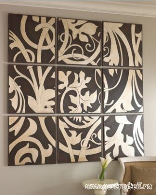 Ну что, давайте теперь весь полученный материал закрепим фотографиями различных современных панно. Забегая на перёд скажу, что креатив конечно зашкаливает, порою обрамлённые картины экспрессивны и для обычной квартиры не подойдут. И ещё, это иногда не совсем панно, что вы сможете увидеть сами, так как имеете точное представление что такое панно. Но, достаточно известные дизайнеры называют эти творения панно, так что не показать их вам, я просто права не имею! Фото при нажатии увеличивается, а это значит, Вы сможете в полном объёме насладится просмотром. Панно в современном интерьере на фото.Фото панно представлено в различных распространённых помещениях, таких как зал, спальня, гостиная комната*, ванная, кухня и т.д., а также в различных цветовых вариациях и соответственно рисунков, и узоров. И первым делом хочется вам представить самые распространённые панно, это бумажные. Фото панно из обоев.Панно из дерева.Совсем необычное для наших краёв панно из дерева. Доски размещены могут быть как вертикально, так и горизонтально. Как видим стыки досок ни кто не собирается маскировать, что придаёт этой доске почёта некоего шарма. Так же во внешнем виде панно из дерева играет немаловажную роль разность цвета древесины и ширины доски. Одни доски могут быть совсем белые, что можно видеть на фото, а другие совсем чёрные, прям угольного цвета. Кстати! Панно делают изначально из досок тёмного цвета, а после уже на месте отбеливают (как отбелить древесину*). По верх панно из дерева обычно размещают что-то сделанное своими руками или семейные фотографии. Фото панно из камня.Как видим на фото, панно из камня не так распространено, но кое на что есть посмотреть. Хотелось бы обратить ваше внимание именно на это панно выполненное из дикого камня в квартире. На стену в нишу помещён самый что ни наесть дикий камень плашка, правда слегка выкрашен. Получилось довольно пристойное украшение стены! А это панно на фото, такая себе современная имитация крупного камня. Не натурально конечно, но это самое экспрессивное фото панно из камня, которое мне посчастливилось найти. Фото панно из обычной и плитки мозаики.Фотографии панно из обычной плитки, лично мне, не очень понравились, вот есть в них что-то такое незаконченное. судить в принципе вам, так что пишите свои мнения в форму комментариев. То-ли другое дело панно из плитки мозаики, которое в большей степени можно встретить в ванных комнатах, но так же встречаются и в других помещениях квартир и домов. Так вот, такие панно самые красивые и презентабельные. Судите сами! Видео в тему - как приклеить панно из обоев на стену. Расскажи друзьям о чём читал!