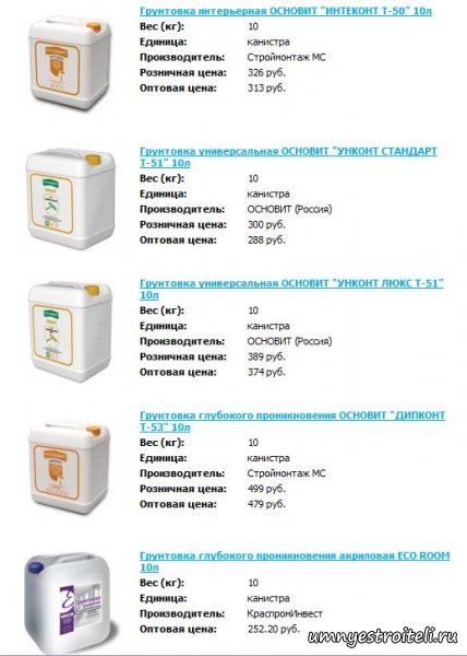 Добрый день дорогие посетители. Сегодня будет обговариваться тема — «Грунтовка цена». Из данного материала Вы узнаете сколько стоит грунтовка совершенно разных производителей и видов разных производителей. Плохо что статью с ценами на грунтовку нельзя растянуть и представить все виды грунтовки, и цены на неё. Но постараюсь хоть немного подковать вас в этом денежно-грунтовочном вопросе, показав цены знаменитых производителей и разновидностей грунтовок, таких как: