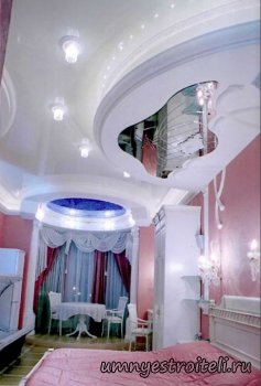 Фото натяжных потолков в зале:Фото натяжных потолков в зале Вы увидите чуть далее. Фото натяжных потолков кликабельно, это значит, что при нажатии оно увеличиваются. Натяжные потолки на фото в зале будут в разных комбинациях, а именно: натяжной потолок в гипсокартоне, как первый ярус, натяжной потолок как второй ярус, натяжной потолок, как третий ярус в гипсокартоне, фото натяжного двух ярусного. Натяжные потолки в зале увидим на фото, как применялись в разной цветовой гамме натяжные потолки: красные, оранжевые, синие, с голубым отливом, зеленые. В общем, хватит лишних букв, наслаждаемся и выбираем для себя фото натяжных потолков в зале. Фото натяжных потолков в спальне.Самый тяжелый выбор натяжных потолков, это выбор натяжных потолков для спальни. На наших фото натяжных потолков для спальни, выбраны самые оптимальные цвета для спального помещения. Кому нужно классики в спальни, на фото представлен потолок мокрого песочного цвета, для кого в спальне не хватает агрессии, розовый потолок очень подойдет. Отлично на фото в спальне смотрится белый меланхоличный потолок. Да что тут рассуждать, смотрим на фото натяжные потолки.