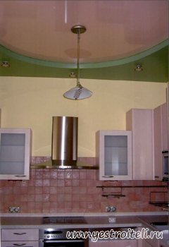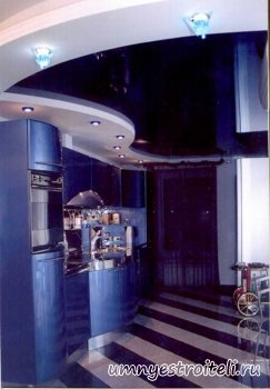 Фото натяжных потолков на кухне.Вопреки бытующему мнению, что натяжные потолки на кухне лучше не натягивать так как они могут из-за готовки провиснуть, просесть или потерять цвет. Это все не так и как доказательство фото рабочих уже кухонь с натяжными потолками! Натяжные потолки отлично отмываются от копоти и жира при помощи обычного моющего.